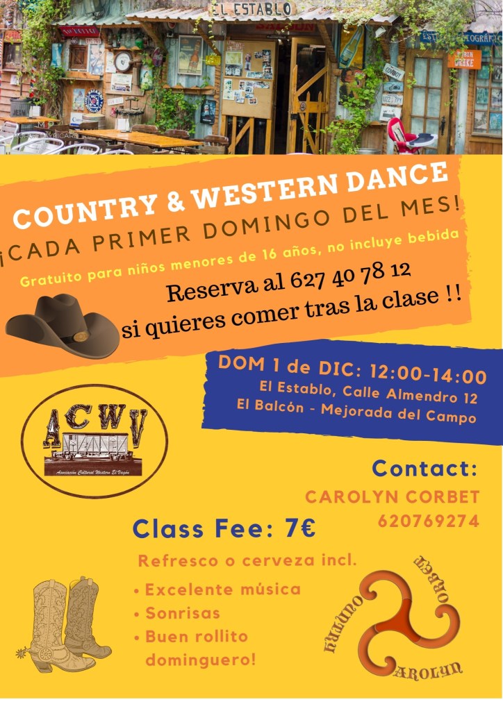 DOMINGOOOO1 DICIEMBRE A LAS 12.00HRS. ! PODEMOS TOMAR UN APERITIVO BAILANDO CON CAROLYN CORBET EN EL ESTABLO DE MEJORADA!!!