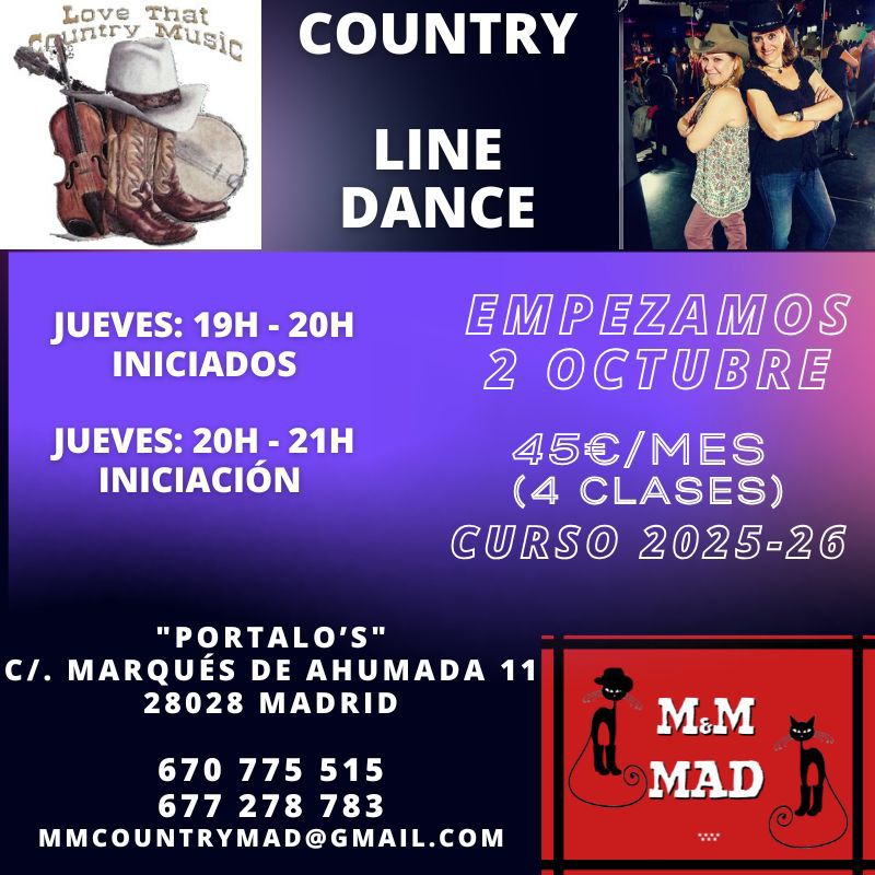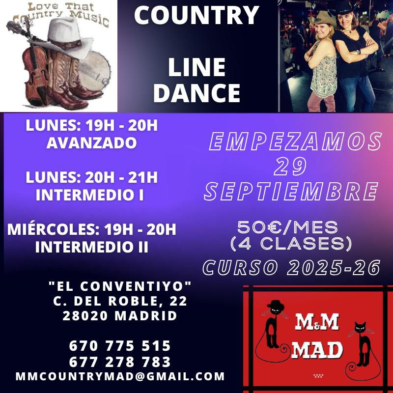 M&M LINE DANCE EL CONVENTILLO Calle del Roble 22 28020 MADRID TF 670 775 515 677 278 783 E-mail: mmcountrymad@gmail.com